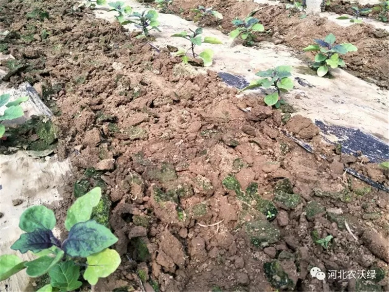 這兩張是施用雞糞的蔬菜地,燒苗了?梢钥闯霾说氐耐寥腊褰Y還有綠苔。這樣的土壤長出的莊稼會比人家的好嗎?不知道你是不是還在施用生雞糞,如果是,那你可以去自家棚里看一看土地是不是存在這種情況。