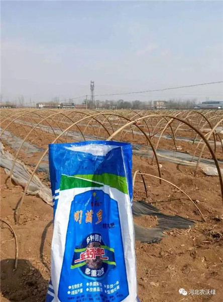 再看看施用農沃綠生物有機肥的棚室,先不說作物的長勢,請仔細看棚室的土壤與上圖對比如何呢?這都是同一個村的棚室,施用了不同的底肥才有不同的效果!