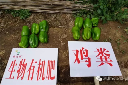 在青椒上使用農(nóng)沃綠蚓菌多生物有機肥和使用雞糞的相對比長勢更旺,植株健壯。長勢也均勻。沒有大小棵。