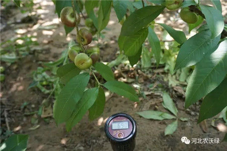 使用農(nóng)沃綠蚓菌多生物有機(jī)肥的果園土壤PH值6.9,適合作物生長。