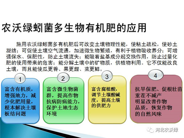 種植戶可以在翻耕之前用一次農(nóng)沃綠蚓菌多生物有機肥,農(nóng)沃綠生物有機肥富含有益微生物菌,使用后在作物根系周圍迅速大量繁殖,在作物根部形成一道嚴(yán)密的防護網(wǎng),對土傳病害引起的死苗、爛根,生長緩慢等土傳病害有很明顯的抑制效果。