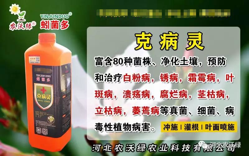 河北農(nóng)沃綠最新推出一款產(chǎn)品——克病靈,是微生物菌劑的升級(jí)版,在微生物菌劑的功能上又新增了幾種活菌,不僅預(yù)防有害菌的繁殖發(fā)展,同時(shí)還可治療園林綠化苗木、果樹、蔬菜等經(jīng)濟(jì)作物與大田作物的真菌性、細(xì)菌性、病毒性等病害,達(dá)到病害統(tǒng)殺的效果。而且還能凈化土壤,使土壤恢復(fù)健康。
