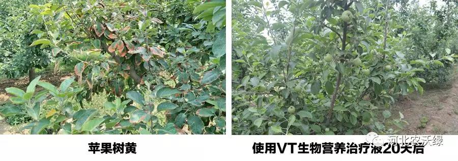 缺素引起的黃化,可使用農(nóng)沃綠VT生物營養(yǎng)治療液給大樹輸液治療。迅速補充各種大中微量元素,增強樹勢,