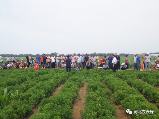 2020年7月1號(hào),下半年的一天,陽(yáng)光甚好,河北農(nóng)沃綠公司應(yīng)邀前往曲周縣水德堡村給農(nóng)戶講解甜葉菊的施肥管理以及病蟲(chóng)害防護(hù)。