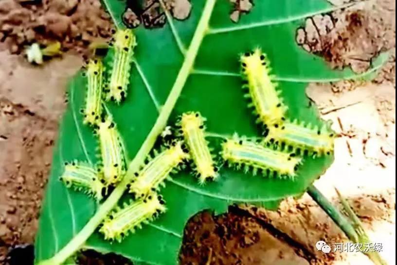 食葉害蟲是以植物葉片為食物的一類害蟲。主要以幼蟲取食葉片危害為重,造成葉片缺刻甚至吃光。少數(shù)侵入葉內(nèi),取食葉肉形成“開天窗”的危害狀。此類害蟲多以群聚,蟲口數(shù)量大對(duì)葉片造成極大危害。